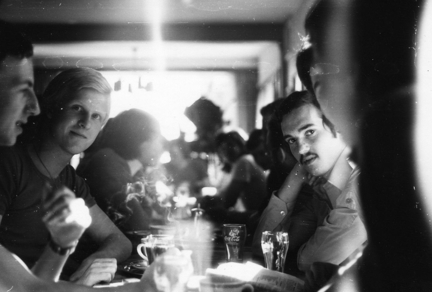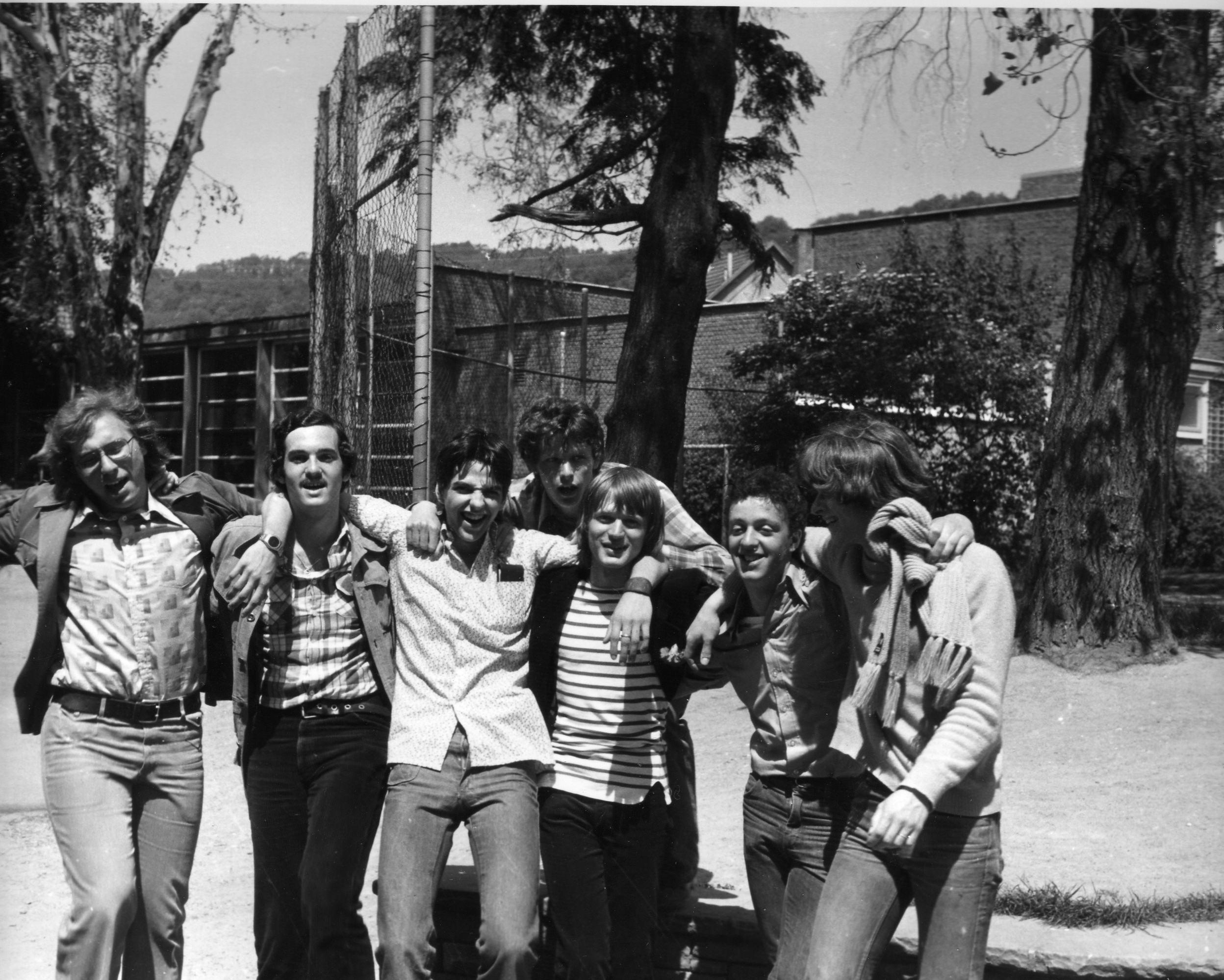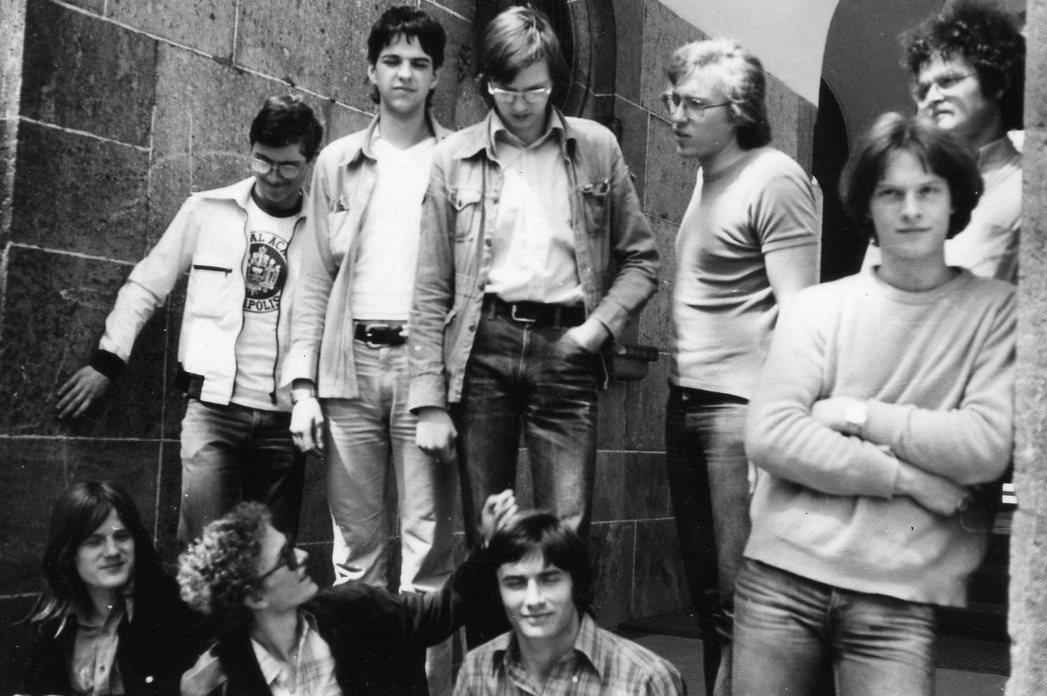 Erkennt ihr Euch wieder? Lange Haare, Schlaghosen, damals noch durchtrainierte schlanke Körper, begnadeter Interllekt. Hübsche Kerle waren wir - Gott, wer hätte uns nicht gewollt ....