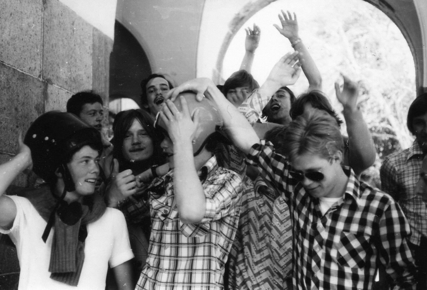 Diese Bilder hat uns Thomas Selzer geschickt, gemacht hat sie Gerald Hänel. Sie müssten in der Zeit kurz nach den Abiarbeiten gemacht worden sind, schließen wir aus der gelösten Stimmung.